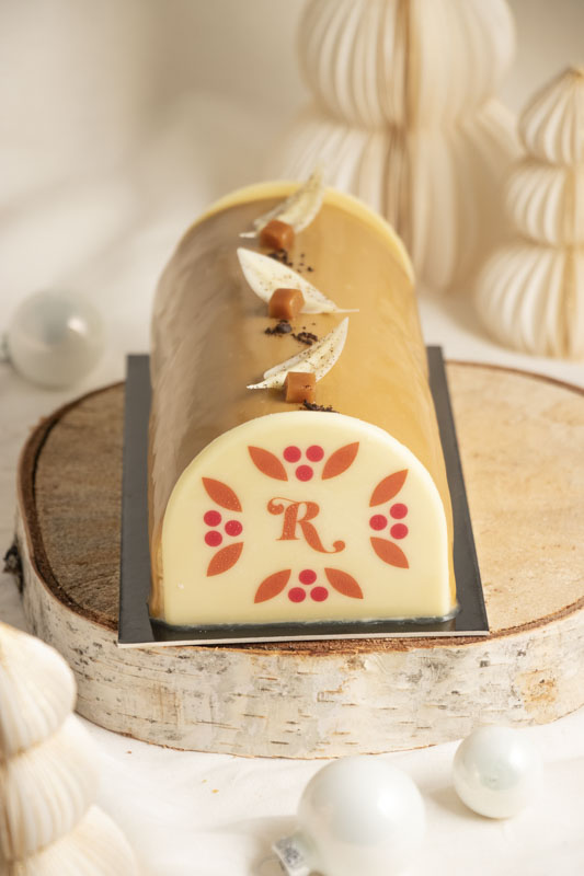 Enfin, vous serez conquis par l’alliance subtile de la vanille de Madagascar et de la pomme verte dans notre bûche Pomme-Vanille. Une mousse légère à la vanille, un crémeux à la pomme verte et un biscuit Joconde pain d’épices pour une expérience gourmande et pleine de fraîcheur.