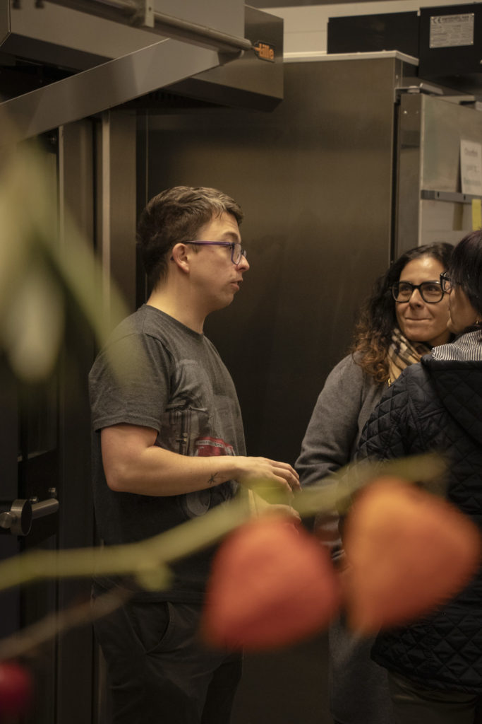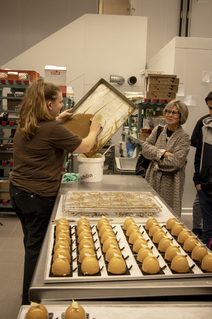 L’allocution débuta par un bref retour sur les grandes étapes du développement du commerce: l’ouverture en 2007, la rénovation de 2011, le déménagement de Ronny (qui habitait à l’étage !) pour agrandir les laboratoires, et l’aménagement de nouveaux bureaux en 2022, entre autres. La suite du discours fut rythmée par des remerciements adressés aux entreprises partenaires, aux autorités locales, aux fournisseurs, aux 35 collaborateurs de l’entreprise et, bien évidemment, aux quelques 370’000 (!) clients franchissant chaque année la porte de la Boulangerie.